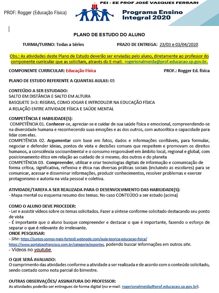 VÍDEO AULAS e ROTEIROS DE ATIVIDADES